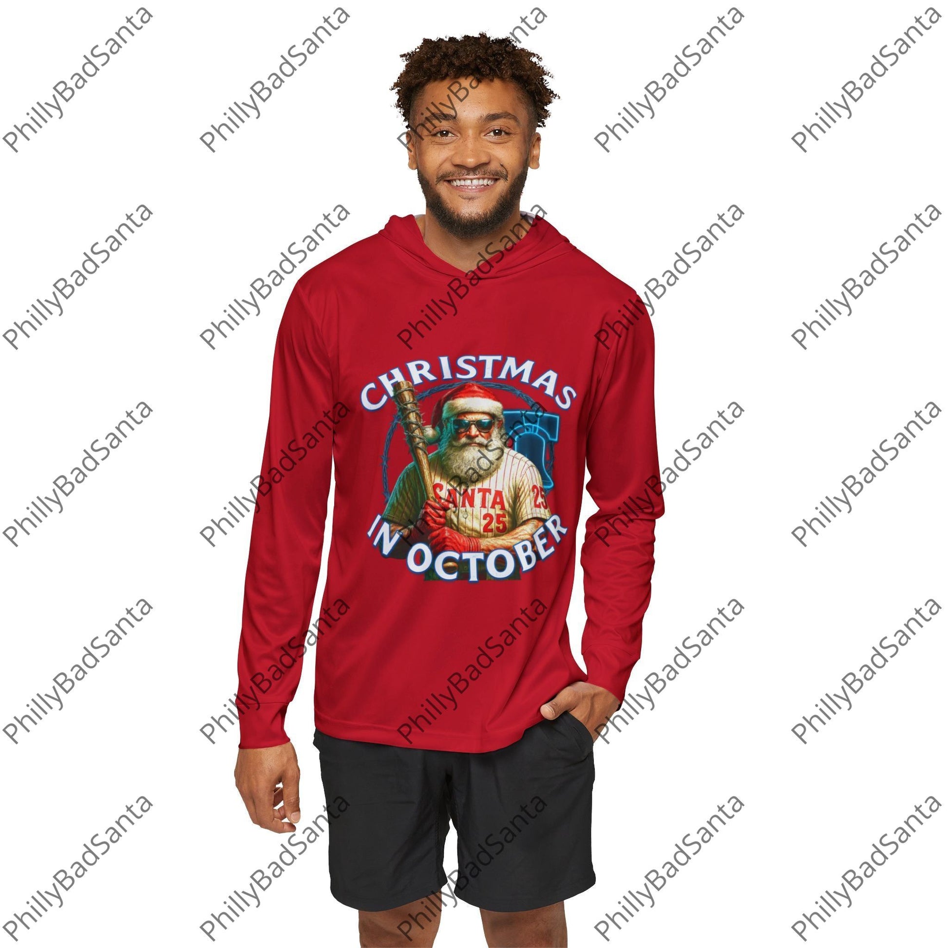 Philadelphia Phillies Bad Santa, Christmas in October Men's Sports Warmup Hoodie