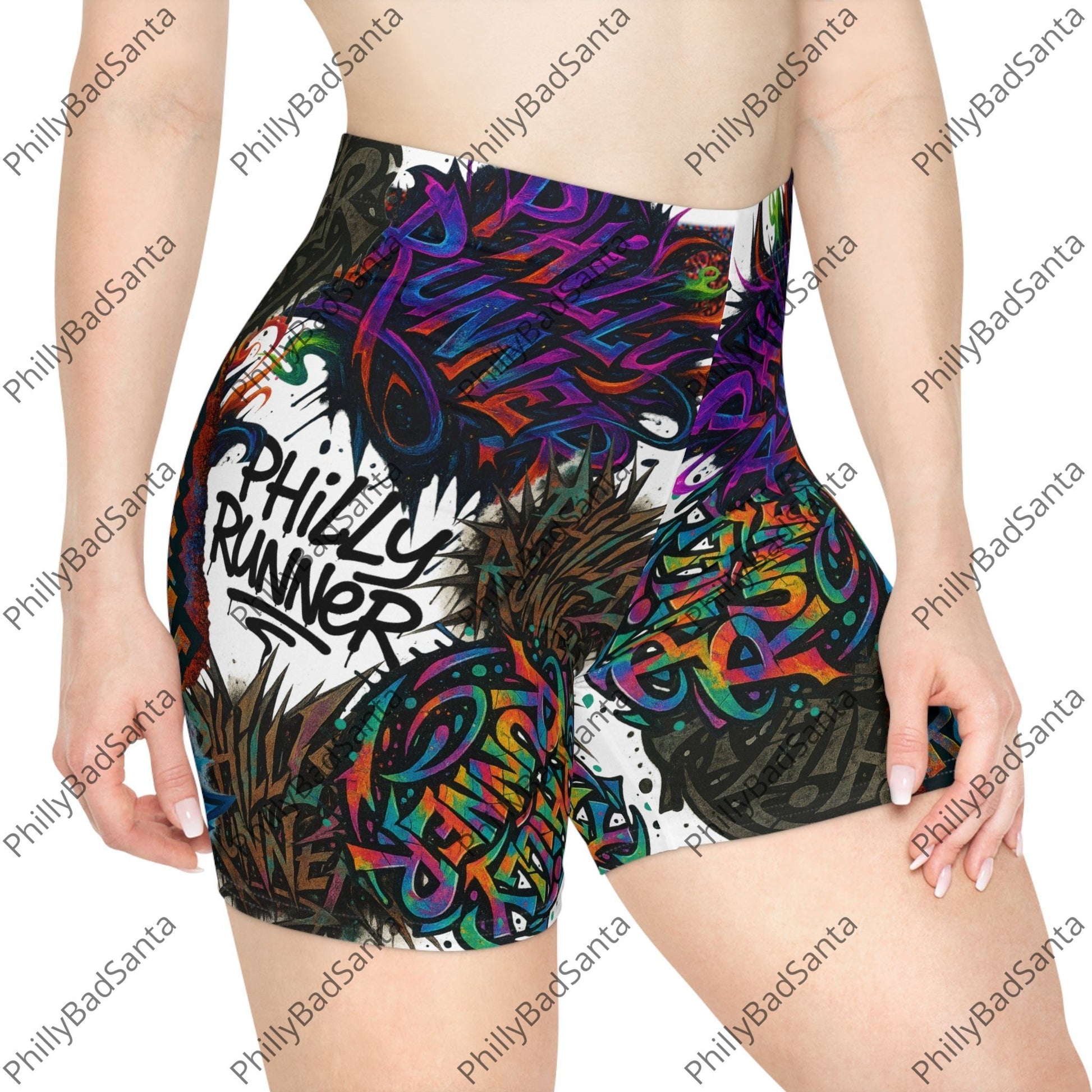 Philly Runner Graffiti Biker Shorts. It's like the graffiti on the El, but on your shorts. Fitness, Running, Summer Wear, Festival Fashion